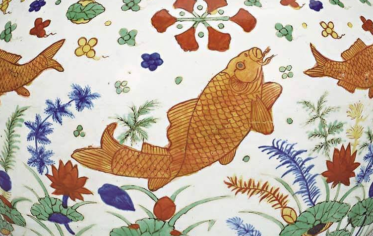 歐美回流橫空出世,是拍賣圈津津樂道的故事,2024年度榜首再度寫下這樣的傳說。此對嘉靖蓋罐由一個德國家族傳承,長年陳設於威斯巴登的別墅,有老照片為證。二戰後期德國遭受盟軍轟炸,主人將家藏藝術品提早轉移,讓蓋罐倖免於戰火。五彩魚藻紋罐是嘉靖官窯中的名品,據蘇富比統計,現今全球有43個嘉靖五彩魚罐,而目前成對且帶蓋的嘉靖魚藻紋罐僅有二組,一為Ernest Grandidier(1833-1912)舊藏,現藏巴黎吉美博物館;其二即為本對蓋罐。蓋罐繪五彩魚池,光豔明媚,池水空明。有蓮荷、藻荇漂曳交橫,金鯉浮游其間,律動清妙,悅目賞心。圖案多處採用嘉靖朝獨有的橘紅色,即為黃彩上塗紅彩,有「黃上紅」之稱。