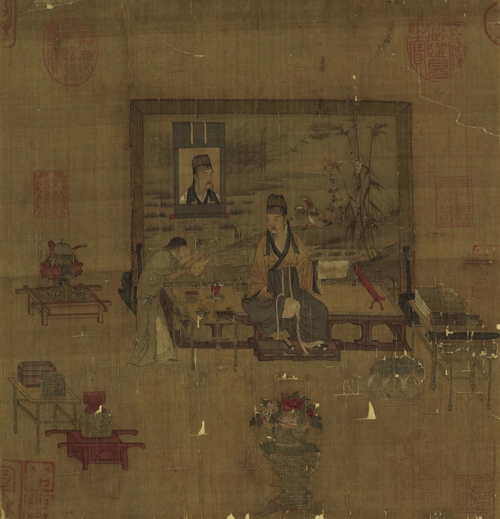 透過宋徽宗〈文會圖〉(圖8)與〈無款人物〉(圖9)這兩張名作中的場景與布置,或許可以讓觀眾具體感受文人雅集的空間與閒情逸致。