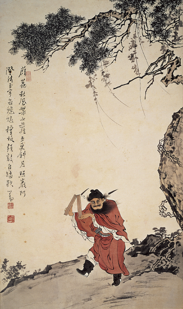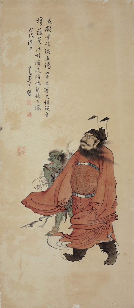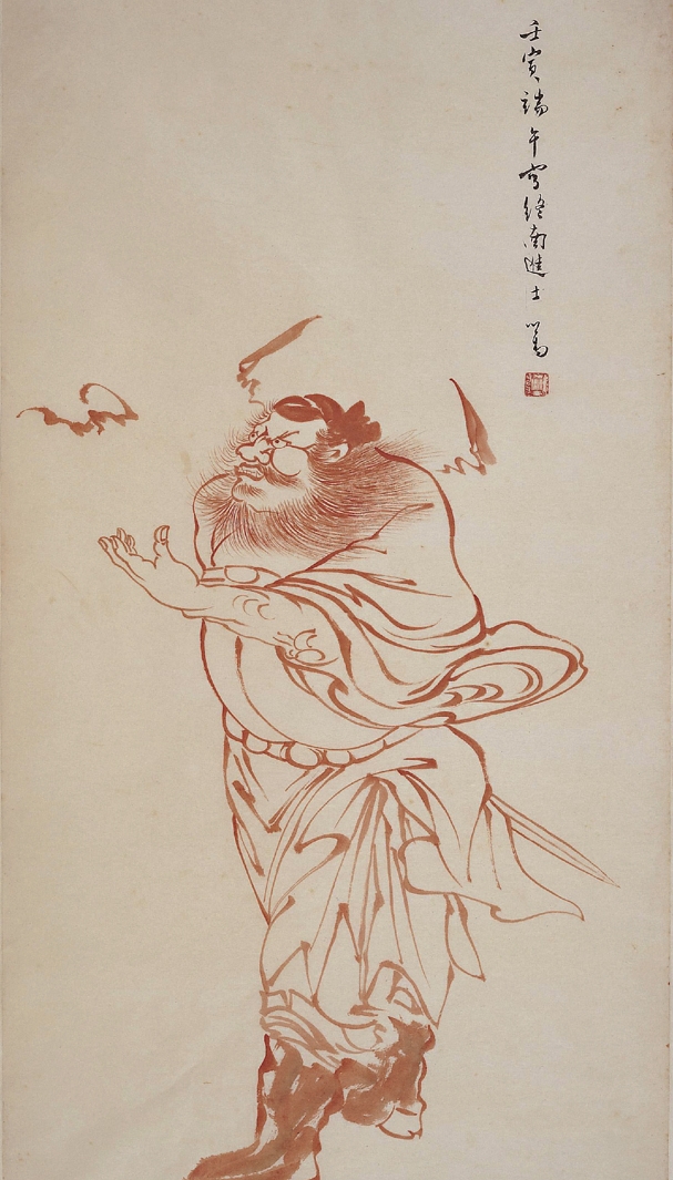 鍾馗是歷代道釋人物畫中常見的主角,因其辟邪涵意從驅儺的工具衍生成人名,再被釋為神名,約莫在明清之際,又被描寫成一個懷才不遇的文人,死後被遣回陽間捉拿方寸不正的惡煞。這樣的故事成為畫作題材,不只有驅邪畫像,還有如聲繪影式的敘事畫作。每年重五,世人尋求辟邪措施,鍾馗作為鬼王,或可驅除瘟疫,於是端午之時,多人求索,畫家便應景繪製,或自描,或寫意,或硃筆,或墨作;或執劍屹立,或座乘車具;或執笏問事,或揚鬚引蝠,各自有態。