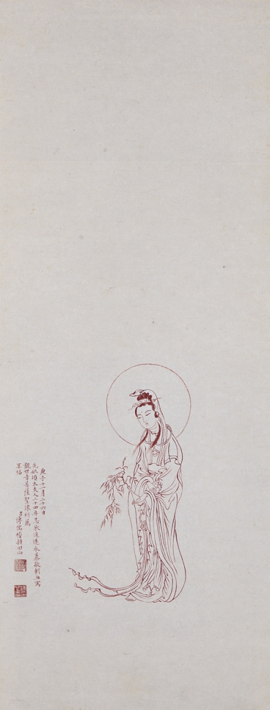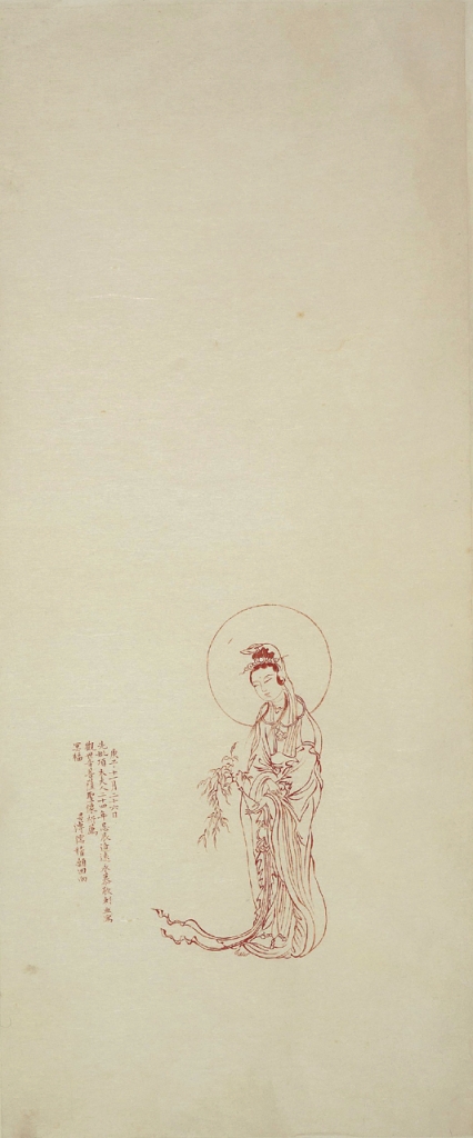 左:圖13 民國 溥心畬1960年作〈硃砂觀音〉,紙本硃砂,80×33公分,國立歷史博物館藏。