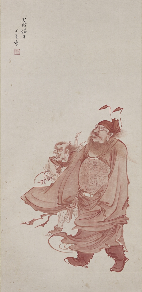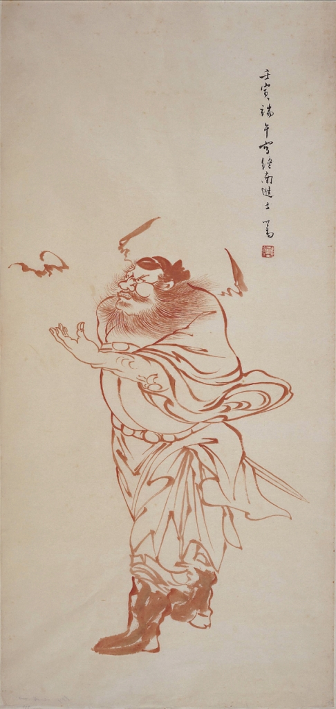 右:圖8 民國 溥心畬1958年作〈朱筆鍾馗〉,紙本硃砂,86.2×42公分,國立故宮博物院(寒玉堂託管)。