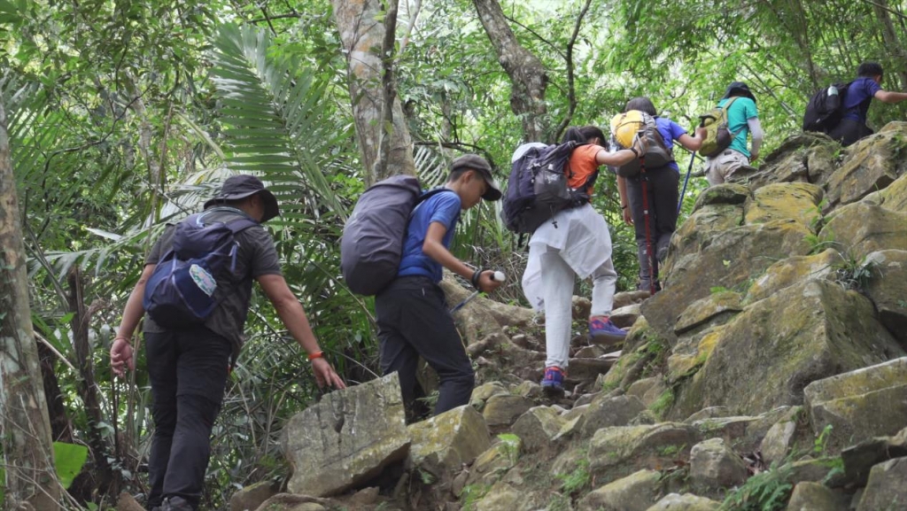 然而3公里長的大禮步道,幾乎全是陡峭岩石,走來並不輕鬆,加上二天一夜的沉重行李,讓年紀最小的俐安逐漸感到吃力。此時,六人再度發揮互助合作好感情,除了大哥子宸與二姐卉沄輪流幫忙揹負俐安的大水壺外,他們也讓走最慢的俐安、佳杰走在前面,其他人默默跟隨在後慢慢走,不催不趕,也不會遺漏任何旅伴。