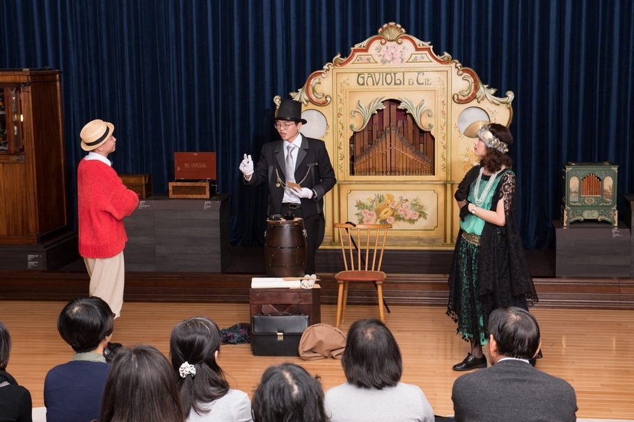 奇美博物館的自動樂器除了常態展示,原本就有演出場次,由解說員操作樂器及講解。為了讓民眾更容易了解其中特色並增加趣味性與記憶度,館方特別將節目升級改版,以戲劇導覽為概念,設計故事情境與演員插科打諢的表演,讓民眾不再只是聆賞自動樂器而已,還可以從中獲得更多歡笑與深刻的體驗感受。