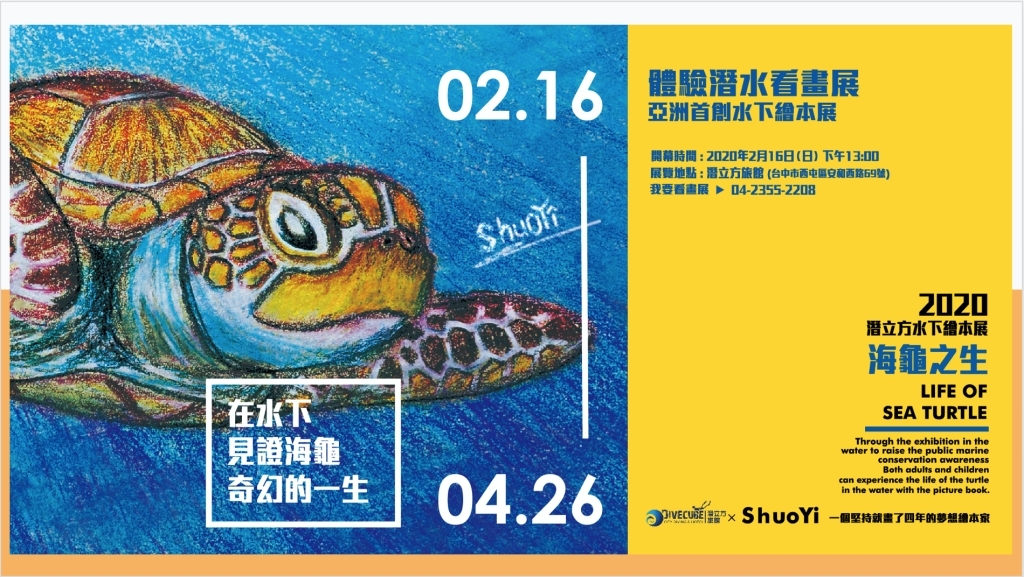 潛立方這次與繪本作家ShuoYi Seaturtle合作,舉辦了世界上第一個水下的繪本展『2020年潛立方水下繪本展 海龜之生』。希望透過繪本展及講座的模式落實兒童教育,並推廣兒童的親水文化,讓海洋保育意識及親水休閒運動在兒童的心中發芽,期盼未來台灣社會的海洋保育意識可以更加茁壯。