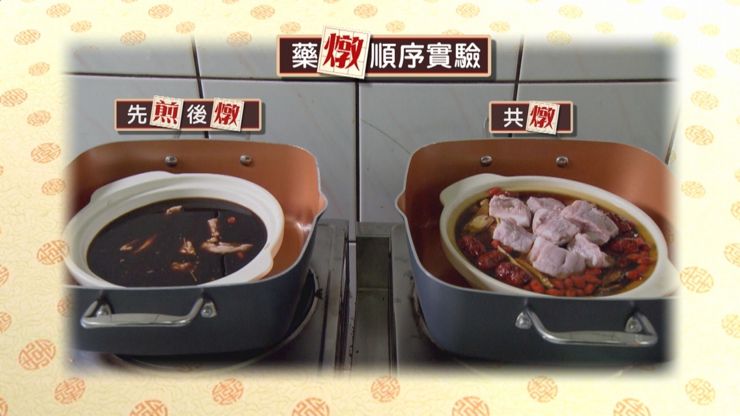 煎藥終於完成了,但咱們還有一個藥燉順序的實驗要來做比較呢!一鍋是把先煎好的十全大補湯放進豬肉排骨,叫做「先煎後燉」,另一鍋是把泡好的藥材直接加入排骨,也就是「藥肉共燉」,想知道這兩種不同的燉法會產生什麼不一樣的味道嗎?哪一個比較香?哪個又比較補呢?請鎖定《神廚賽恩師》一起來找答案吧!