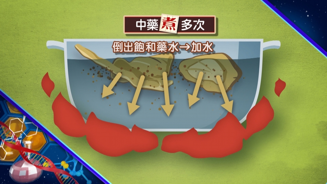 因為一開始的藥水濃度太高,繼續煮也沒辦法完全把有效物質溶出來,所以要先把已經飽和的藥水倒出,重新加水繼續煎煮,所以說煎藥還有分成頭煎、二煎,甚至三煎。