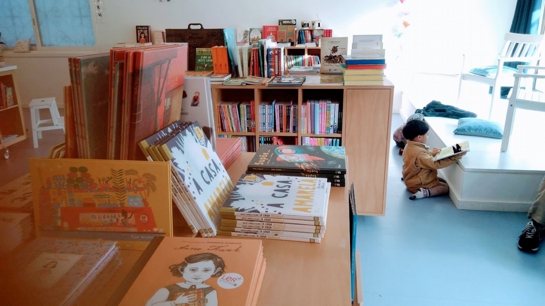 窺探週邊書店,Salta Folhinhas的店主忙著幫附近學校選書,我親眼看到他推薦幾米的作品!(是的,幾米是我在葡萄牙最常遇到的台灣繪本了,另外一本可以見到的是《班雅明先生的神祕行李箱》)