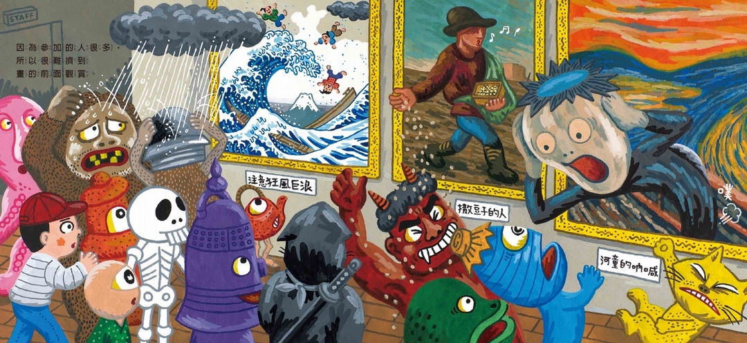 黃佁禎建議,「父母在共讀這本書的過程中,可以先從圖像欣賞做為第一步;再進一步試著搜尋、整理繪本中的名畫資訊,和孩子們分享!閒暇之餘實際到美術館觀賞更會是美好的親子回憶喔!」藝術就在生活中,就算是「妖怪」也是一種美學,廣瀨克也以Kuso的方式說故事,讓妖怪不再是妖怪,是充滿想像的魔法;而貼近生活的主題能引起共鳴外,更無形帶出的日本文化,是能再深入認識的內涵喔!
