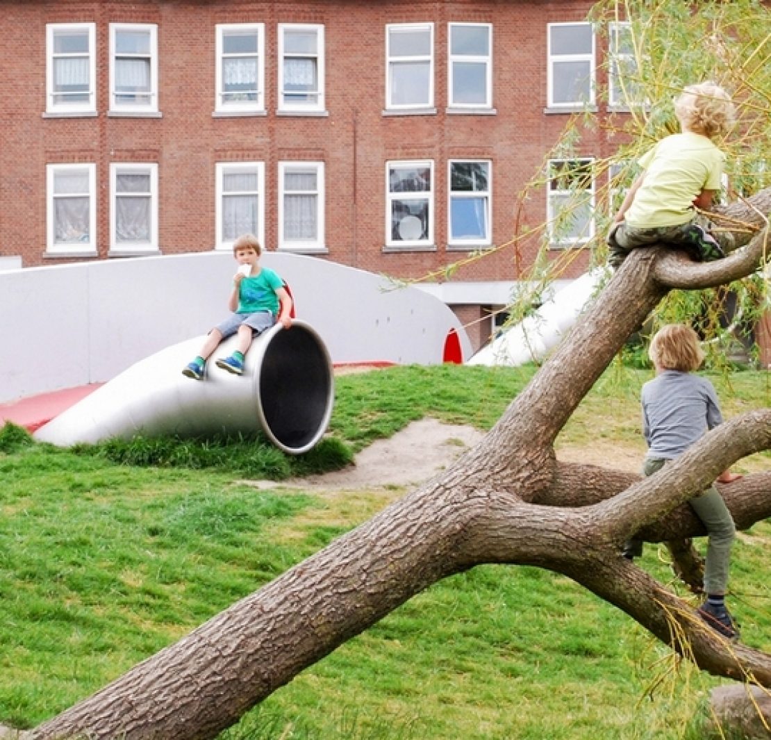 位於中央的自然遊戲場,是由高低起伏的景觀所形成,也是該計劃中最具創意的部分。其中包含了數種本地植物和各種自然素材、沙坑、樹幹橋樑、隧道和滑梯。這樣的設計,與先前既無趣又單調的遊戲場,形成了強烈對比。對孩子們而言,難道不是一種重新探索這個遊戲空間新功能的邀請和鼓勵?