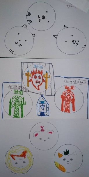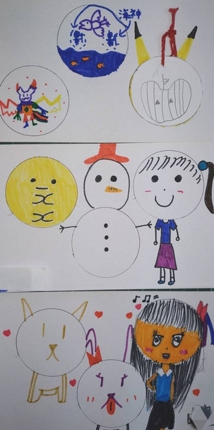 最近的一次教學活動中,有個小一的女生怯生生的來求助,說她想畫角落生物但不會畫……,這讓我有些小小憂心,因為兒童的創意表現遠勝這些,梢稍觀察了一下角落生物,發現他們的造型特色是圓圓的,可愛的……。因此規劃了一個小小活動:圓的聯想,在一張紙上畫了許多圓,讓兒童們發揮想像力,加上幾筆及一些顏色,再從他們的聯想作品中創造新的角落伙伴,增加他們的信心,分享幾張作品如下: