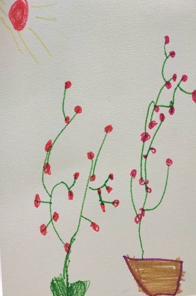 清代張潮寫的《幽夢影》中提到:「若無花、月、美人,不願生此世界……」、「……為月憂雲,為書憂蠧,為花憂風雨……真是菩薩心腸。」可以看出愛花之心是人的天性,為了領略花的美感,校園中的植花,也是養成兒童們美感的養分來源之一,所以他們的作品中不經意就有花的表現,而精彩的是他們的不同表現。