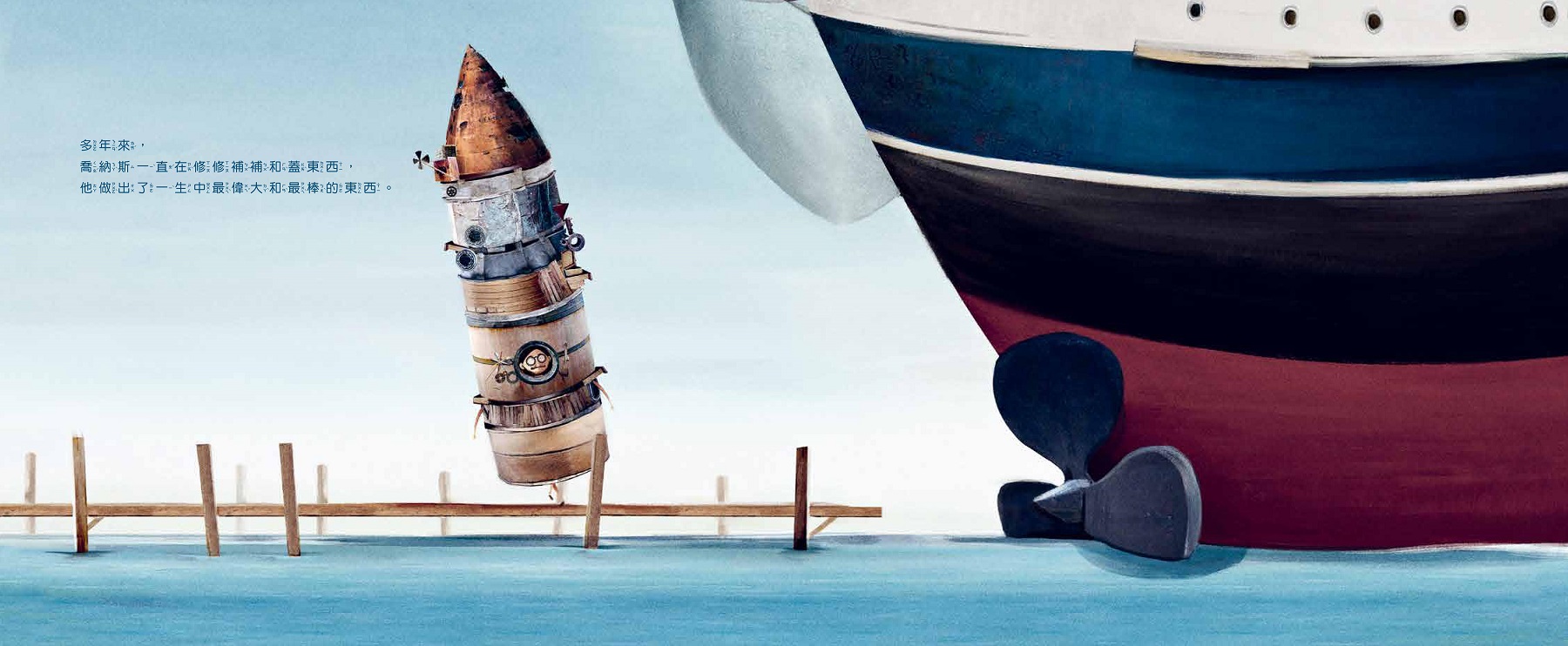 值得細細留意的是「時間間隔」──2~8歲,等著擁有自主行動能力嗎?8~18歲,是否等著身心發展成熟呢?18~30歲、30~80歲,這期間喬納斯怎麼了?「喬納斯收集大海給他的任何東西,同時耐心等待,他真正需要的……」喬納斯真正需要的是什麼?