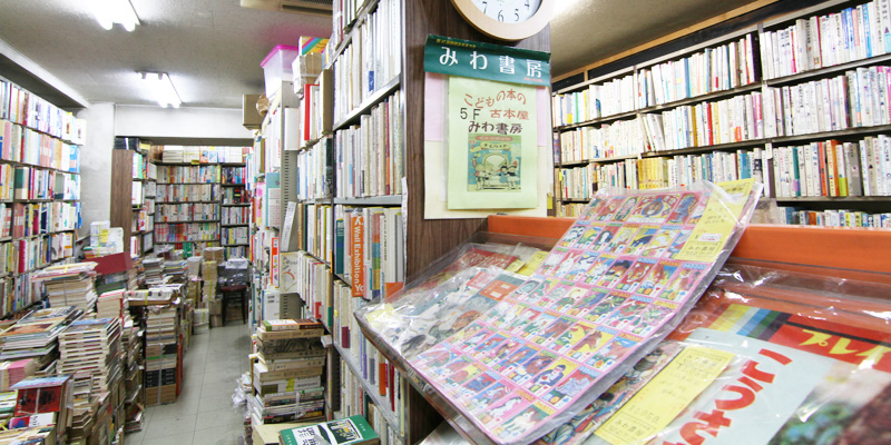 說到二手書店,你腦中浮現的是像茉莉書店那樣整齊、窗明几淨,還是一落落的書從地上堆疊到天花板,必須擠身在狹窄的走道中穿梭,小心翼翼抽出你想要的書?目前為止我介紹的古書店都是屬於前者,而這篇要介紹的三輪書房(みわ書房),就是屬於後者。