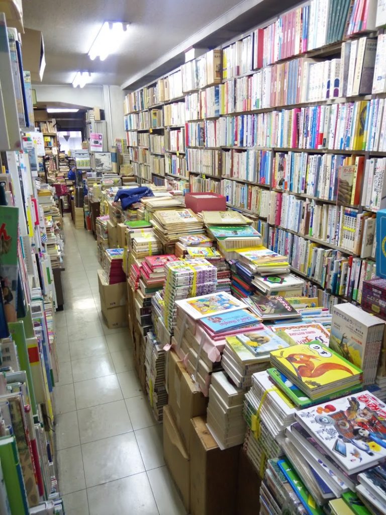 店內的空間其實不大,加上鋪天蓋地的書,說實在不是個很舒適的購書環境。但這種地方才是真正能挖到寶的地方。入口處主要放的是近代的繪本,這裡我通常會花很多時間,把一疊疊的書抱下來,一本本確認。有時旁邊沒地方堆,或是懶得一本本拿,就歪著頭看書名,時間久了,不只腳麻腿痠,連脖子都快斷了。把想要的書挑出來放在一邊,還得不時的回頭顧好自己的書,一不小心可能就會被別人拿走,因為店裡到處都是一疊疊的書,誰也不知道到底是店家的書還是別人挖出的寶。這邊的繪本大多以日本為主,但還是有不少神奇國家的繪本,我每次整理書架時,看到某些書都讓我懷疑,這些書我到底去哪裡買的?後來再仔細一想,原來是在三輪書店!我曾在這邊收到一疊南美洲的兒童雜誌,也買過蘇聯時期的立體書。