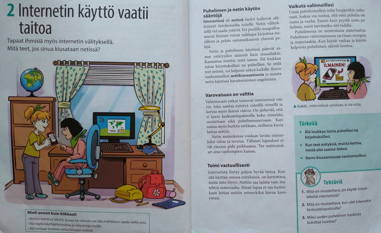 為幼兒編寫的教材從童話故事出發,讓孩子思考什麼是可相信的,什麼是謊言,並帶領孩子去認識生活中常見的媒體。小學以上的媒體素養教育則是跨領域的課程,視情況融入在各科教學中,例如,在數學課,學生學習了要操控統計數據有多麼容易;在視覺藝術課,學生看到了如何使用修圖軟體對圖片進行修改;在歷史課,對於曾經發生過的假新聞資訊戰進行分析討論;在科學課,學習驗證關於疫苗的虛假信息;在芬蘭語課,讓學生搜尋新聞,嘗試分辨什麼是「事實」與「故事」。媒體教育的目標就是培養積極、負責任的公民,讓學生學會認真思考、核對事實,並解釋與評估日常中所有收到的信息,因此在所有學科中,都應將其視為教學內容的核心部分。
