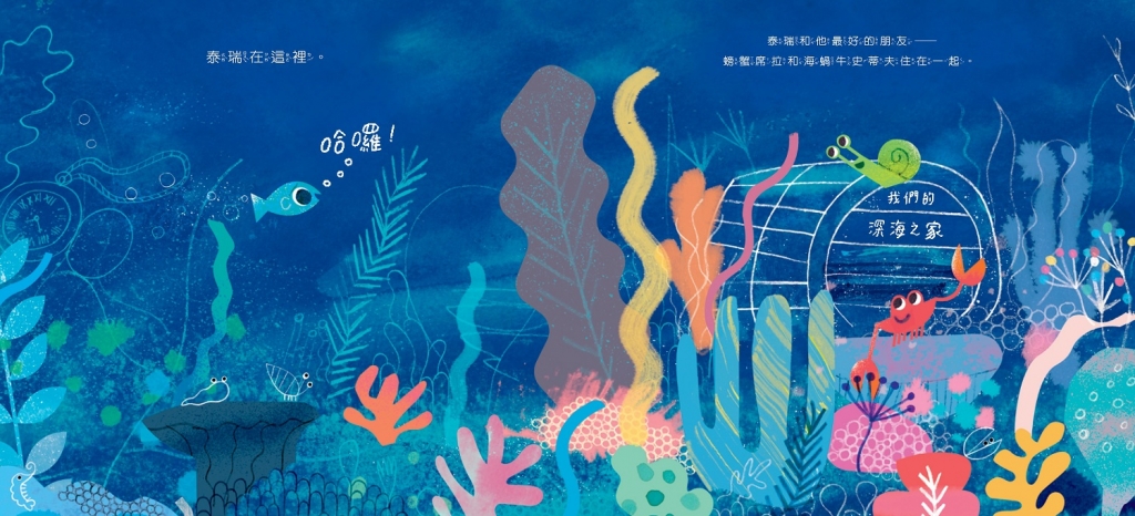 臺灣四面環海,是一個典型的海島國家,擁有豐富的海洋資源。但對大多數人來說,能親近海洋的機會並不多。這此繪本以色彩繽紛的海底世界為封面,吸引我們想要翻書。果然,創作者沒有讓我們失望,在閱讀過程中,我們彷彿跟著小魚泰瑞,一起徜徉在美麗的海底世界。