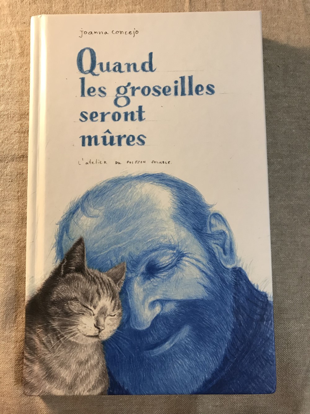 《黑醋栗成熟時》,說是繪本,稱其為詩文圖集更貼切。讀時想起她《遺失的靈魂》使用的圖文搭配,文字集中某幾頁,圖像再不疾不徐,藉文字的後座力延伸場景及角色的細節。兩本書也在好幾個頁面,使用同一個場景的細部變化,調度時間的流動。這本書裡的孤獨男子,也有她《沒有名字的老人》裡主角慢緩沈靜的身影。但相較之下,本書平實地把圖像界定在寫實基調中:碗盤不再大如澡盆承載泡浴的人,沒有鹿和兔棲居餐桌上,人物的身形比例正常,花草不會翻轉成巨大的路燈,自然而然,或如被翻攝採集的樣本細緻描繪。所有事物皆如實呈現、如肉眼所見。