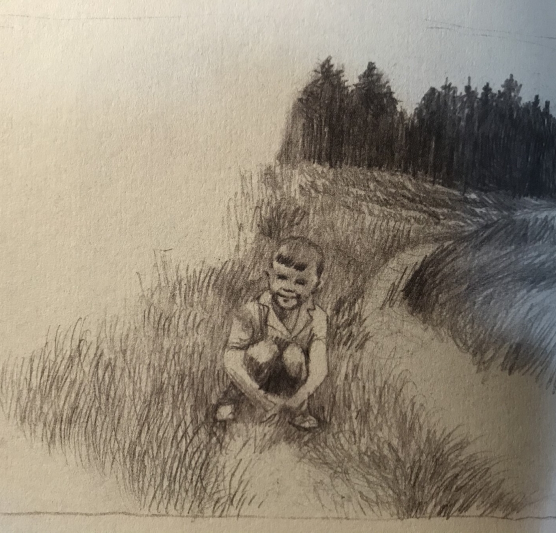 跟《遺失的靈魂》一樣,書名頁出現前,圖像已經開展了敘事。文字寫著:亨利的回憶,書頁圖像是幾張孩童照片,有人有景,也有局部的特寫(如握著杯子的手)等等,有些呈現被黏貼的狀態。很喜歡這樣的形式,像是登場前的絮語,也是創作之眼以一筆一畫凝聚開場的儀式。