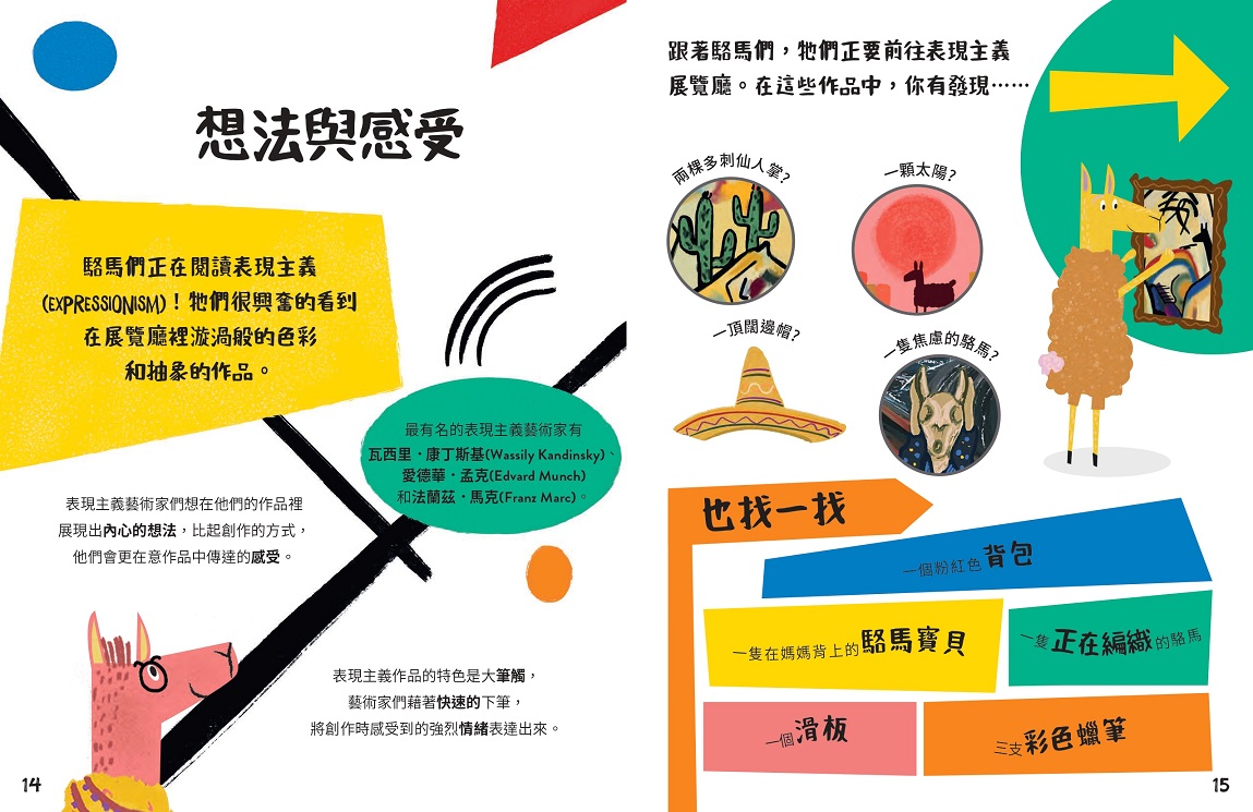 動物們看名畫:以每種動物本身的習性為出發點,並將特性及角色融入藝術作品中。
