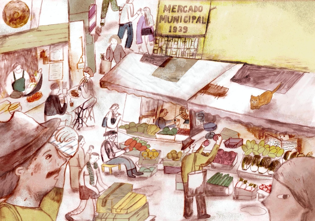 曾經在「燈塔,城市的黑暗敘事」裡,分享過洋小漫暫名為《米先生去買番茄》的繪本作品,看到在遠方風景中,燈塔被畫了下來。故事主角——畫家米先生,因為畫不出番茄,走出房門,前往菜市場購買番茄。沒想到購物袋破掉了,番茄跟著他回家,藤蔓延伸跟著米先生走過大街小巷,終於到他家,然後⋯⋯