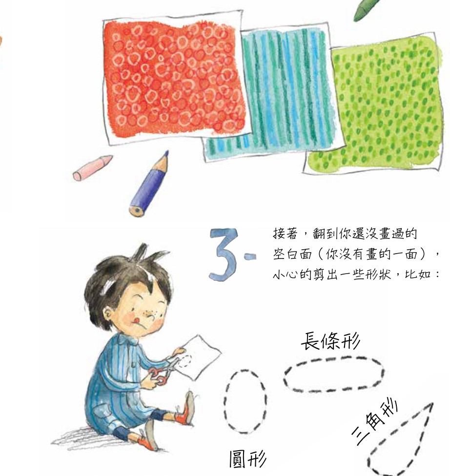 運用色塊、塗鴉以及一些技巧來發揮想像力。
