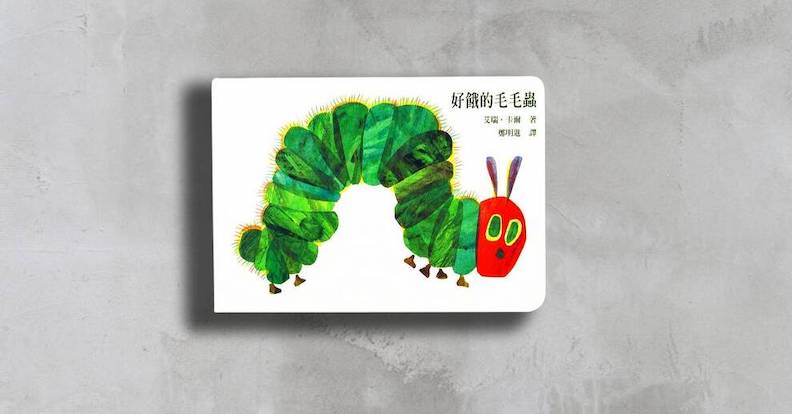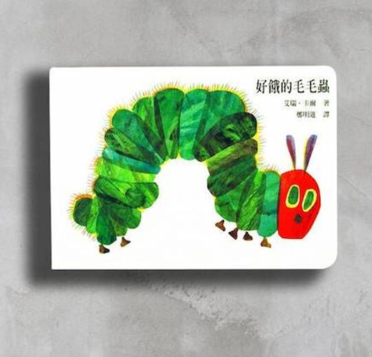 在「好餓的毛毛蟲」裡,利用打洞的特殊效果,呈現毛毛蟲蛻變為蝴蝶的過程,同時也用拼貼的圖畫,介紹了十多種食物,和星期天到星期一的名稱,加上紙版書的形式與圓角的設計,成為一本能讓幼兒享受多種閱讀樂趣的玩具書。