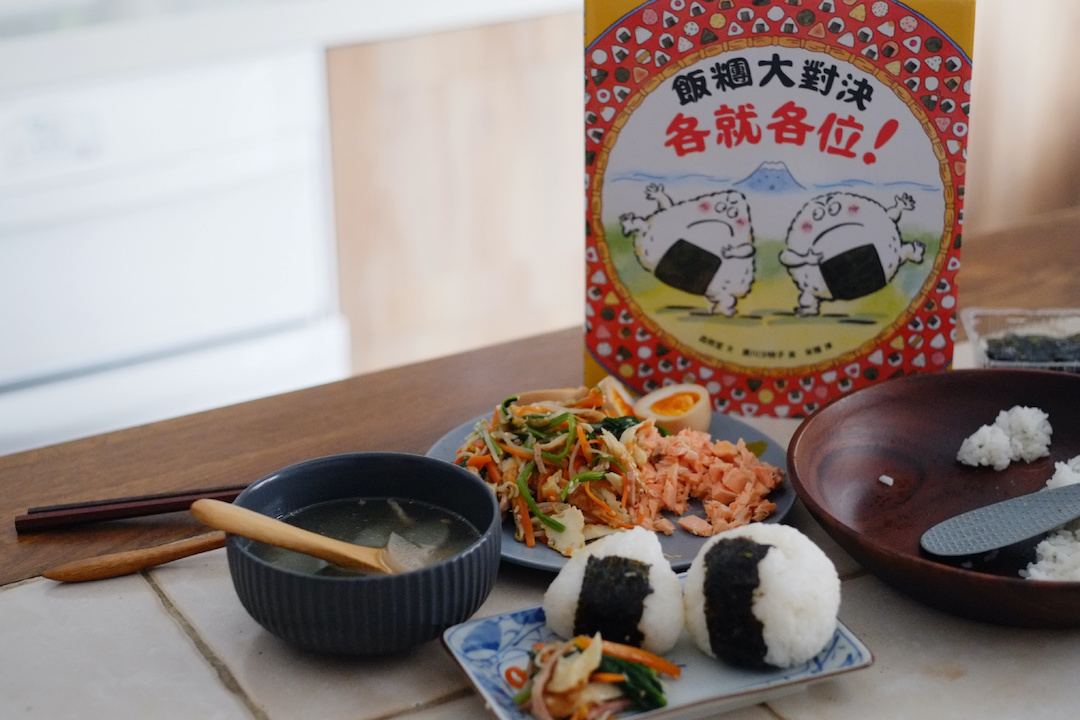 書店久違的早安故事時間這個月要和大家說說飯糰的兩國之爭,聽到故事裡有愛吃的飯糰,闆寶和孩子們幾天前就開始興奮期待囉!