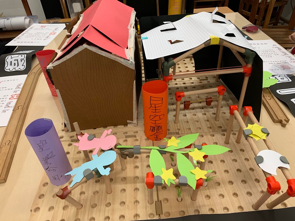 活動第一天,林建成老師帶領大家從遊戲中、認識建築結構線狀(木條、竹子)與面狀(三角板、矩形版),各有著直、彎、軟、硬的材質特性,是國內外知名建築大師作品中,常被運用的,孩子們從實做中發揮創意、一展身手~從團隊合作中,創造出令人驚豔的小小成果!