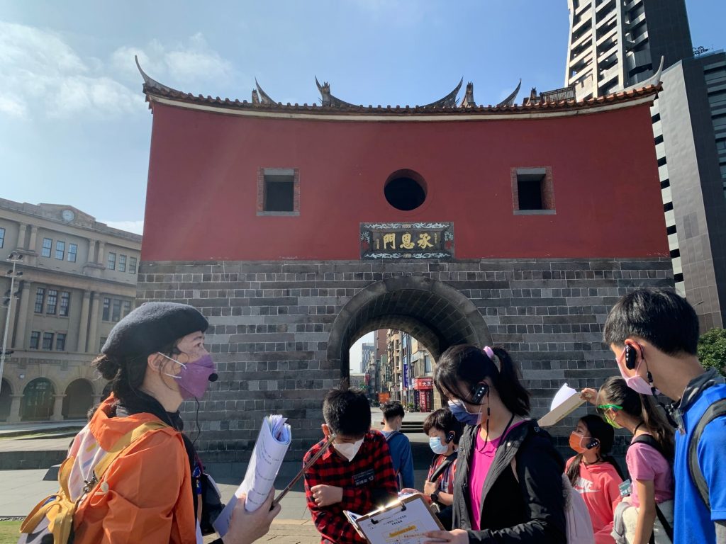 來到近年重新修復開放的一級古蹟──國立臺灣博物館鐵道部!由徐智暖老師進行兩天的建築設計課程,其擅長透過走讀建築、啟發孩子體驗探索建築之美。孩子們在捷運北門站內文化牆,了解台灣鐵道發展歷史,也興奮地走在北門遺跡保留的原址上,循線走到地面層近看北門(承恩門)內外構造,也了解鐵道周邊的都市發展脈絡~