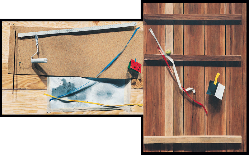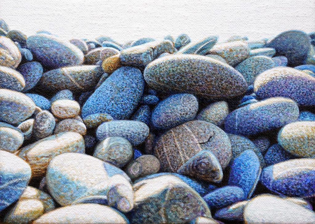 在古希臘故事中,畫家巴赫西斯(Parrhasios)和宙克西斯(Zeuxis)曾進行一場繪畫比賽,並以高超的仿真畫技戲耍對方。這種在藝術史中被稱為「錯視畫法」(Trompe l’œil)的技巧,到了當代,仍然有不少藝術家運用類似手法傳遞個人觀點。例如已逝的資深畫家司徒強《左+右》取材自日常中細瑣的物件,精準地描繪出物件的質感肌理,進而讓逼真的畫面挑戰觀眾的視覺認知。超寫實藝術家周珠旺也同樣專注於擬真形象的捕捉,《金玉滿堂石》及《磊磊》以其家鄉屏東隨處可見的沙、石為靈感,在綿密的點描手法中蘊含個人情感和生命的深刻體悟。