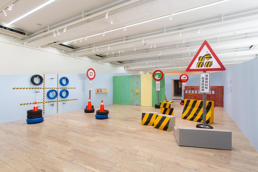廖昭豪則在互動區製作新作《路上設施觀察計畫》,透過紙漿、顏料等材質的堆疊,擬仿路邊常見的護欄、鐵皮與磚牆等物件和設施;質感與量感的落差,不僅翻轉視覺上對物質的既定想像,也讓觀眾在看似平淡無奇的現成物中,能夠引發意外的驚喜感、甚至會心一笑。