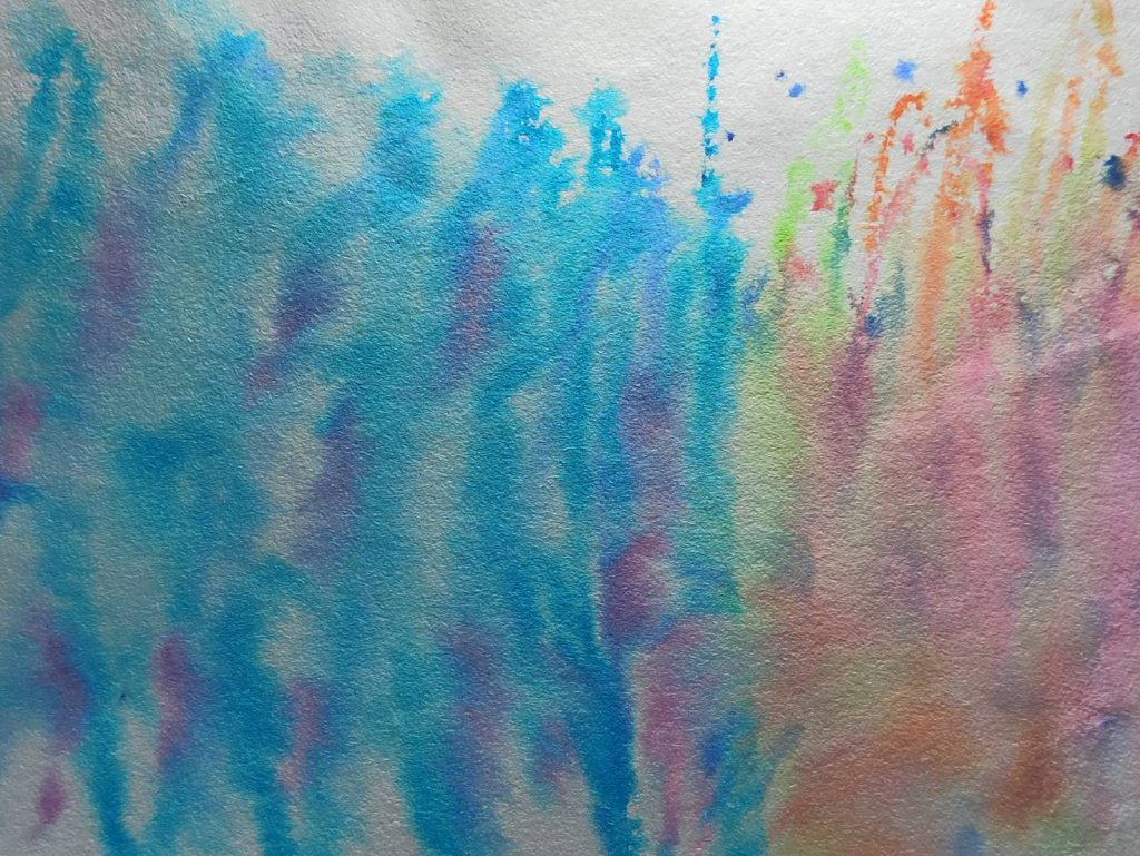 小朋友會對水彩感興趣,也許是因為水彩的流動特性,充滿著多變,能滿足小朋友的喜歡探索,除了用畫筆畫畫,直接用手觸碰水彩,能滿足他們的觸覺需求,也可以讓他用小腳直接沾上水彩來做畫,或用小腳蓋印章後再發揮創意完成作品,用力呼氣來吹動水彩,吹出的線條加上想像力,作品應該也會很有趣!