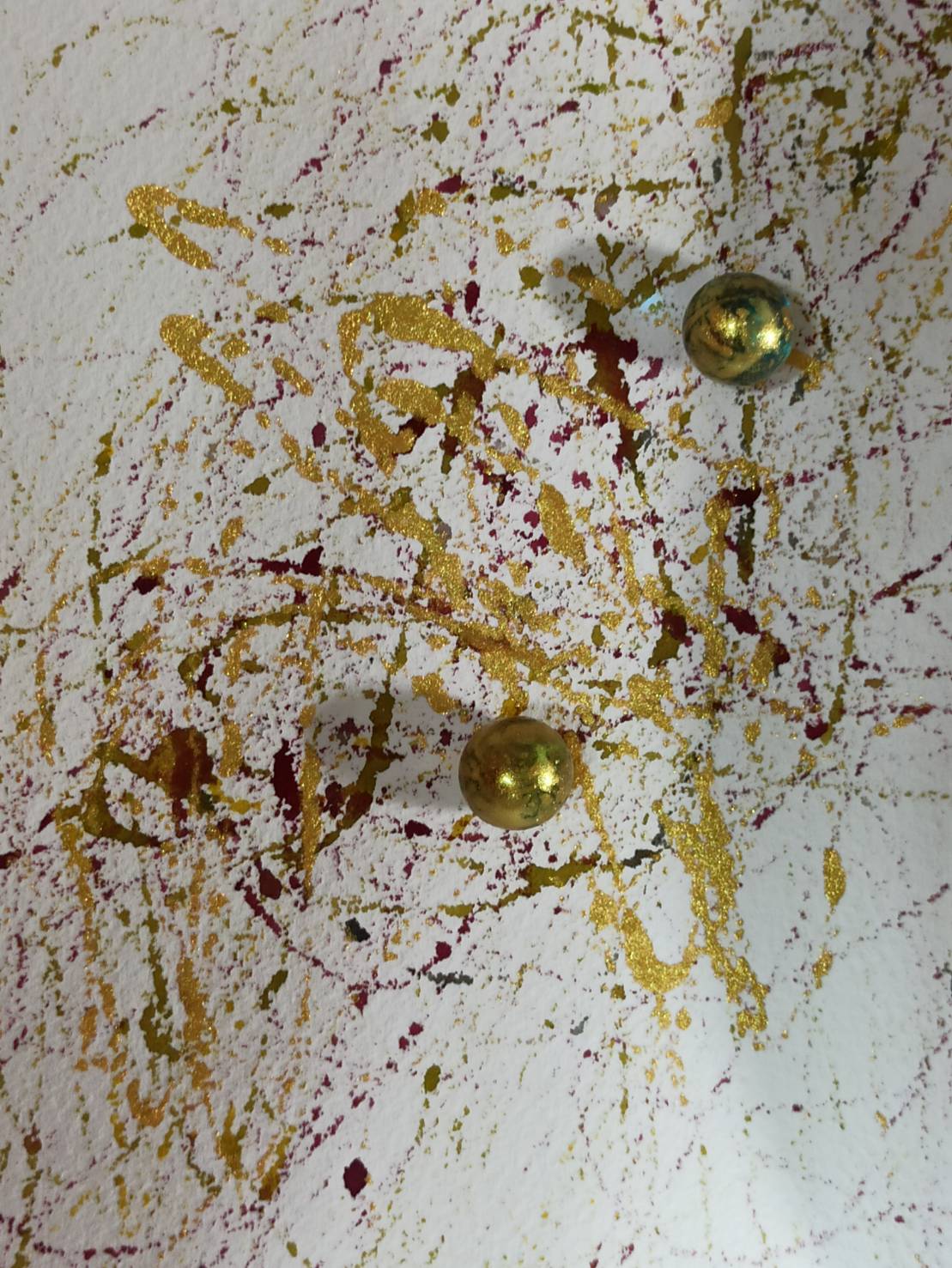 遊戲1 牙刷沾上白色顏料後,刷彈出白點,創造出白雪紛飛的效果,還可以用來作畫,隨手刷幾筆,可以是一片草地也可以畫出動物身上的毛,或者再加個幾筆,我們發現除了具象還能表現抽象的畫作,因為牙刷畫起來成功機率較高,小朋友容易有成就感。