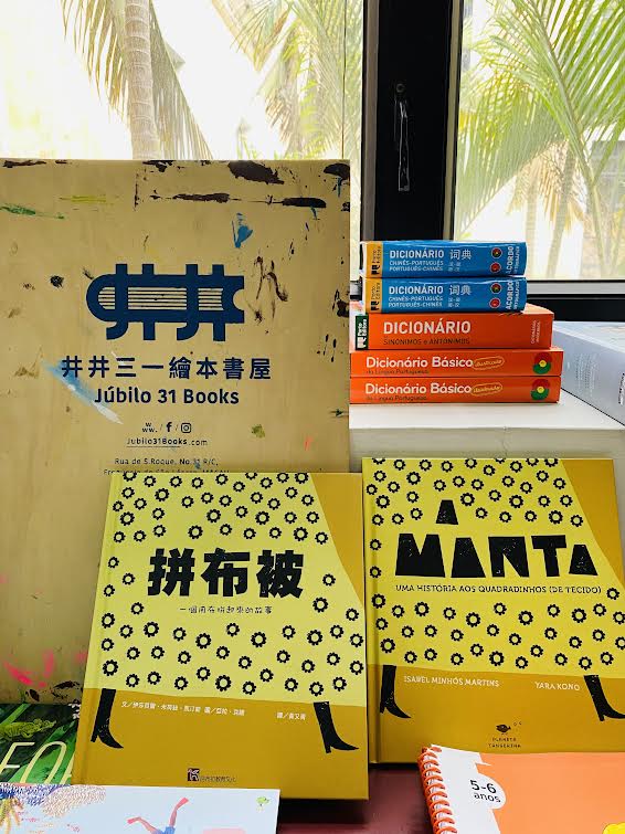 葡萄牙與澳門慶祝的「自由日」,是四月25日,殖民地瓦解的前一刻。井井三一選了《三球毛線,編織自由》(小魯文化出版),背景就是葡萄牙反對極右革命的前夕,孩子們跟家人流亡到極左的斯洛伐克,以及《拼布被:一個用布拼起來的故事》(阿布拉出版),葡文書店除了放《明日之書:這就是獨裁》的葡語版,亦放了《拼布被》原版”A Manta, Uma Historia aos Quadradinhos,”( Isabel Minhós Martins, Yara Kono, Planeta Tangerina ),都是出自河野雅拉之手,在談及動盪時代的時候,這兩本作品都有種遠觀的視角,例如《拼布被》說故事的是外婆,孩子們必須透過幾塊布來連繫記憶中的親人,他們可能是參與非洲戰爭的舅公、可能是康乃馨革命前夕被抓走的阿姨。就像《拼布被》的外婆每次的開頭都說「喔,那一塊沒有故事啦⋯」或是《三球毛線,編織自由》母親們的棒針,在在任何地點、任何時代,康乃馨革命的「溫柔精神」被延續,這些作品都沒有任何政治字眼,讓讀者有空間去擺放歷史記憶的各種矛盾情感、讓孩子們有餘地去「完成自己的故事」。