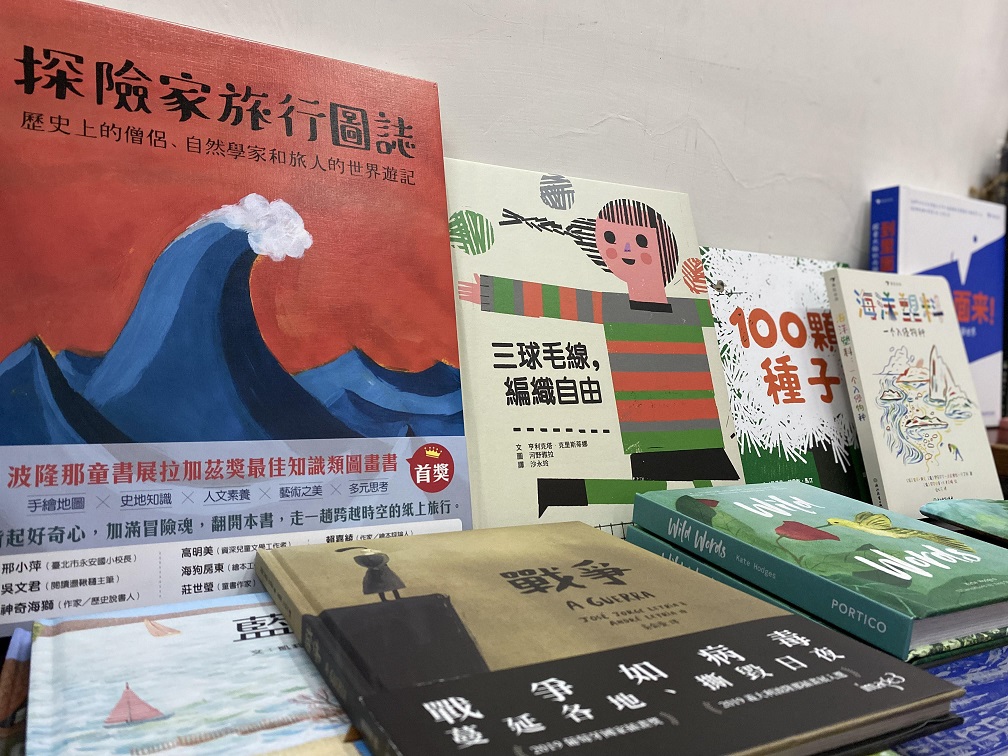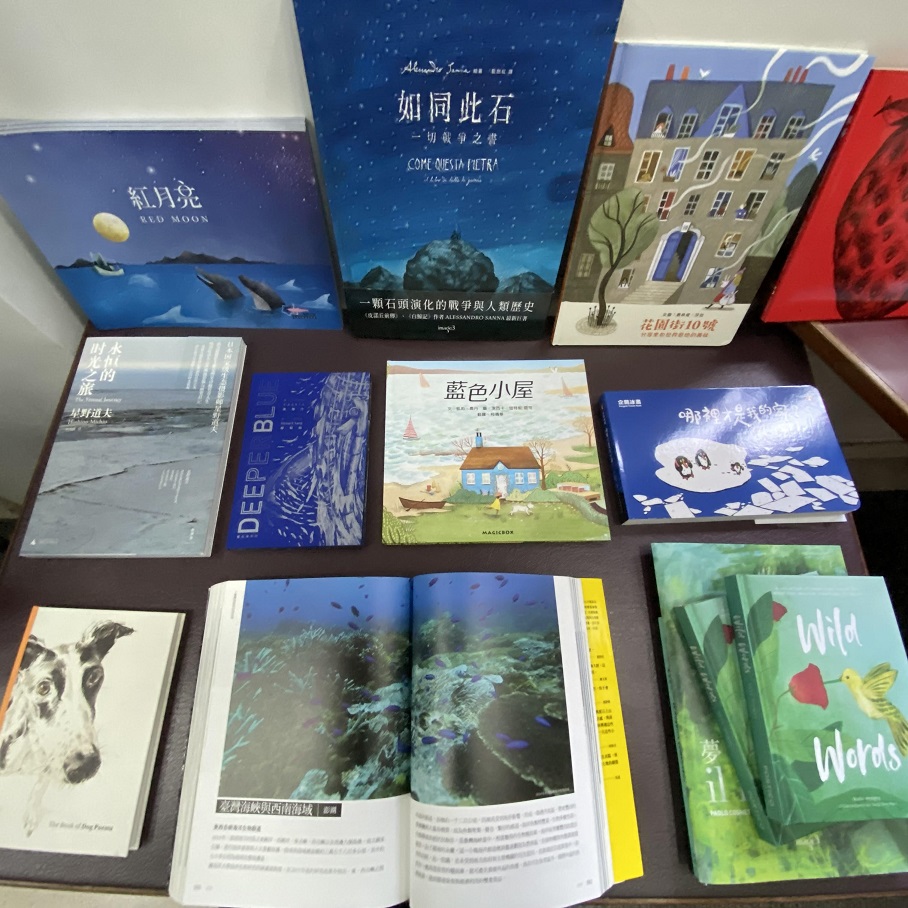 葡文書局選了大量的自然繪本(昆蟲、動物、生態史主題與圖鑒),繪本上的選書,有詩意繪本紐約畫家Cindy Derby的《在世界裡頭》(書名暫譯),還有談及海洋資源現狀的《故事外的魚》(書名暫譯),「思考未來」是一個選書方向。
