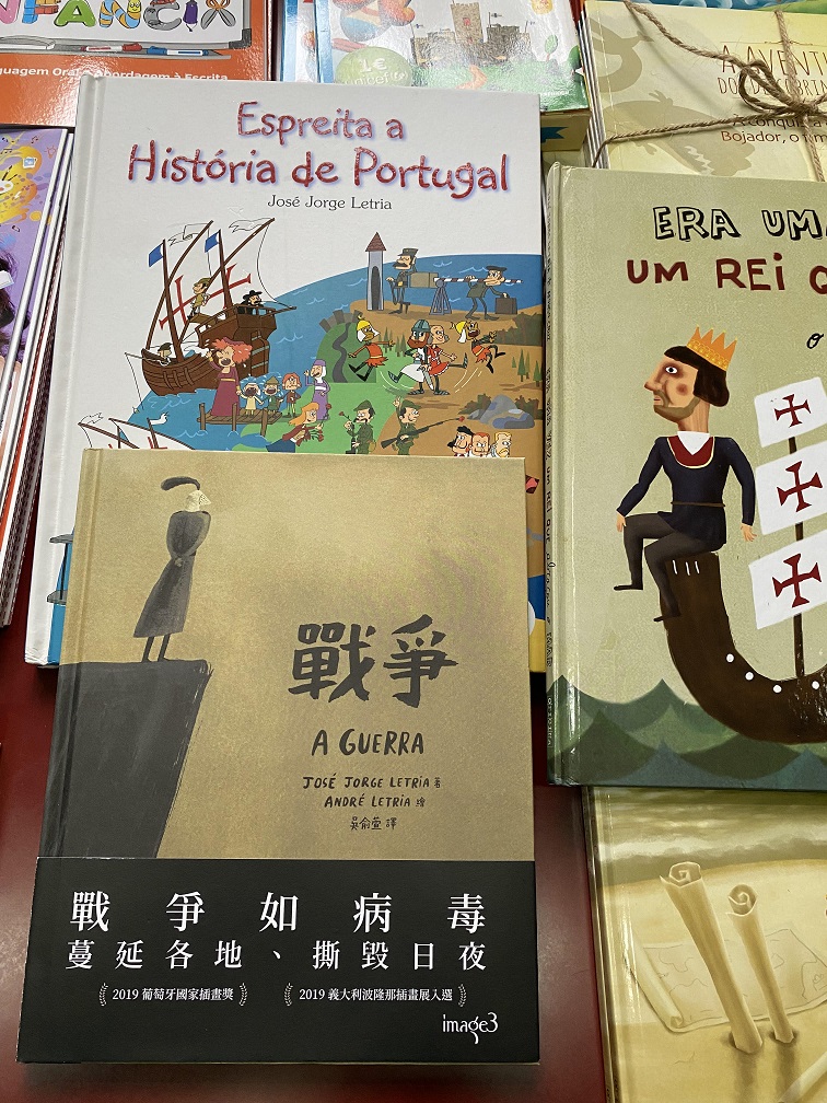 在關於海洋史的部分,在井井選了中文版《戰爭》(大塊文化),葡文書店選的是其文字作者談歷史的兒童作品。和插畫家兒子合作《戰爭》作者José Jorge Letria,為小讀者所認識的不只是詩,他長年寫作與葡萄牙歷史有關的兒童文本,有的甚至被拿來製作成網路課程的動畫。這些選書內容,大抵得知《戰爭》裡的歷史感從何而來,此書亦是作者對他那麼久以來為兒童書寫歷史,共同對歷史榮光的詰問。