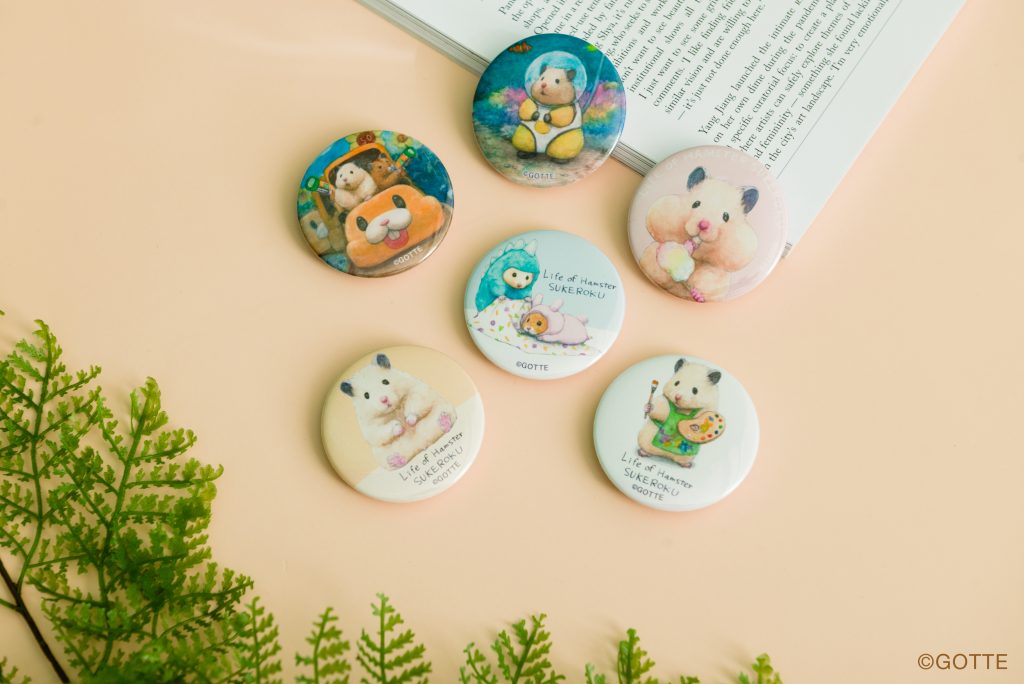忙碌生活也能享受藝術療癒時光!化身文青的助六拿著畫筆、在花園中追逐蝴蝶及夏日吃著涼爽西瓜等圖樣的「無框畫」幫你美化房間、辦公室,紓解壓力山大的生活壓力;改變從小事做起!用「徽章」變化包包的裝飾,不論是萌萌吃著棉花糖、悠閒地坐著發呆或專注創作的助六,全系列六款圖樣,就讓充滿文青風格的助六為每天努力的你加油打氣!