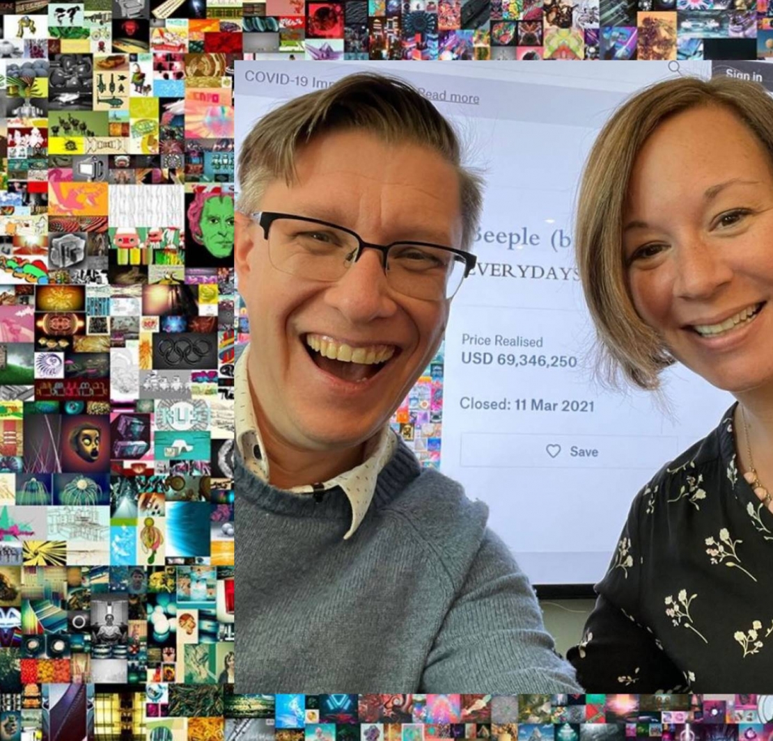 佳士得(Christie’s)網上拍賣呈現的首件由以NFT(非同質化代幣)藝術家Beeple創作的《每一天:前5000天》(Everydays: The First 5000 Days)在佳士得上拍以來,引發各界熱烈反響,自2月25日於網上拍賣開放競投至台灣時間3月11日晚間10點(截標日)以來,一路從起拍價100美元飆漲至驚人的6025萬美元(落槌價),競標的最後幾分鐘,作品價格再掀上漲,價格從2,000萬美元躍升至5,000萬美元以上,最後以約6,934.6萬美元成交,創下歷史紀錄。