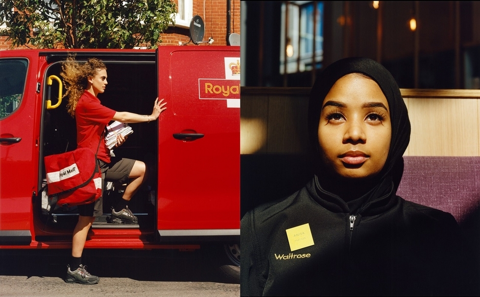 左圖為郵差卡里.斯科特(Karrie Scott),右圖為超市助理阿妮莎.奧馬爾(Anisa Omar)。(© Jamie Hawkesworth;富藝斯提供)