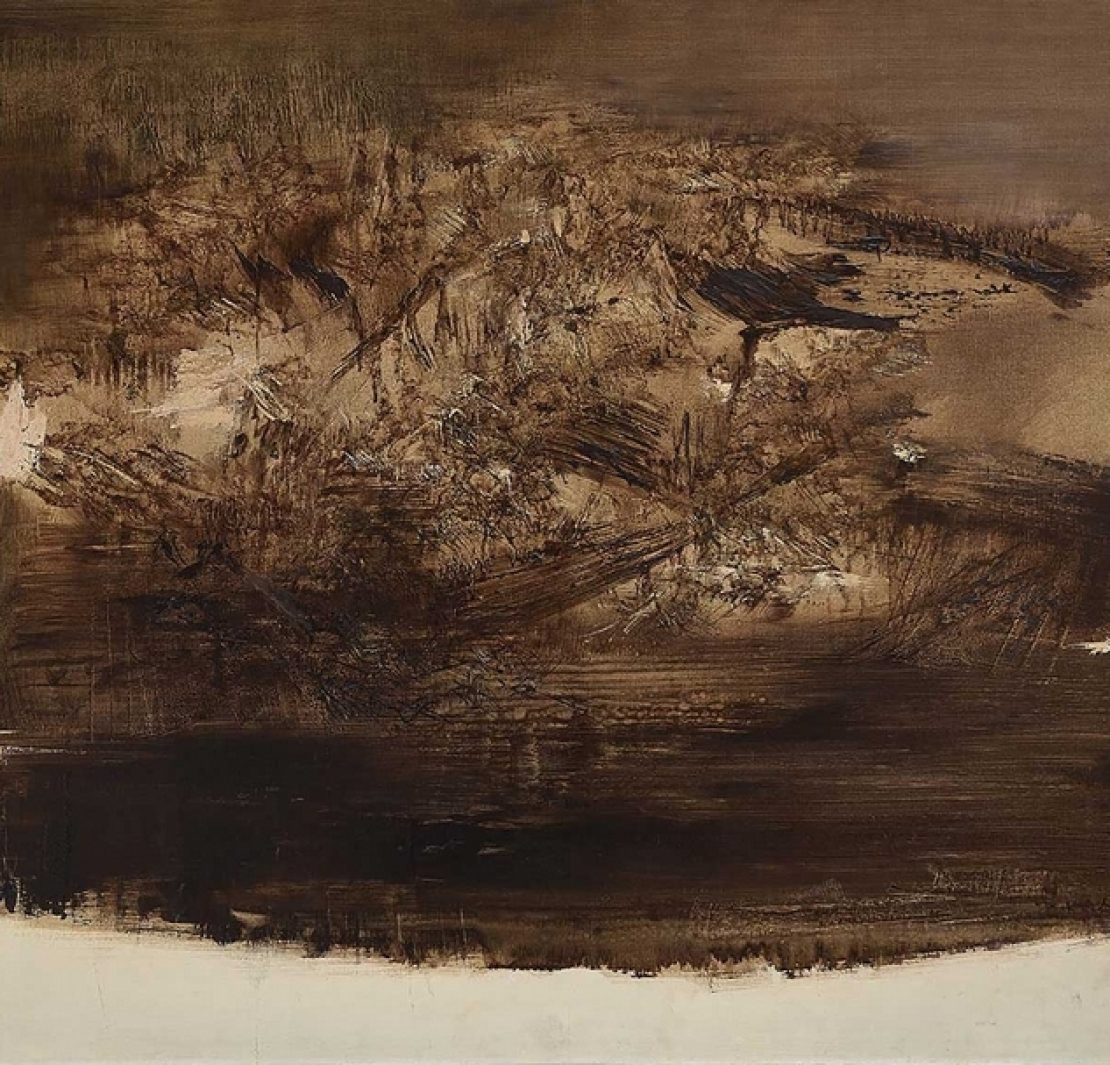 中國書法有千年的歷史與傳承,書法的線條在點、撇、勾、捺間各有表情,並展現行書者的氣韻與思想,此在20世紀初期對許多西方抽象大師造成深刻的啟發,趙無極在此將千年中國書法文化的精髓提取淬鍊,用以西方的媒材與抽象的語境開創出一獨一無二的創新之路,奠定了其在美術史上的地位。而回溯創作此作的1968年10月,藝術家正經歷痛失親人的重挫。該年與其感情甚篤的銀行家父親在文革的批鬥中過世,而他當時的太太陳美琴正受精神疾病的折磨,同時作為人子與人夫的趙無極,內心的沉重可想而知。畫中大面積的褐彩,以及急促的短筆觸,或也言說了他的心境,以及對於故國父親心底最深刻的懷想,使作品增添了在表象背後深刻的意義。作品曾作為1993年《趙無極畫集》的封面,並被收錄於1995年趙無極首度於高雄市立美術館的展覽中,代表性不言而喻。