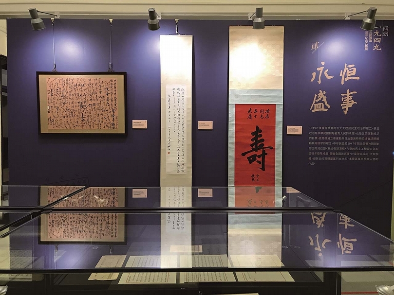 多少的戰爭硝煙散去,經歷過七十載寒暑,今安居樂業於此。11月6日至12月29日由國立清華大學文物館籌備處、何創時書法藝術基金會、中山堂共同合辦,於中山堂及何創時書法藝術基金會創時講堂二處展出「回到1949 中華民國渡海七十週年紀念文物展」,透過總統、政要、將軍、學者、高僧、書畫家、軍人遺孀、流亡難民等世間眾生之文獻檔案、照片信札、書法繪畫,重新喚起一個關鍵年代。