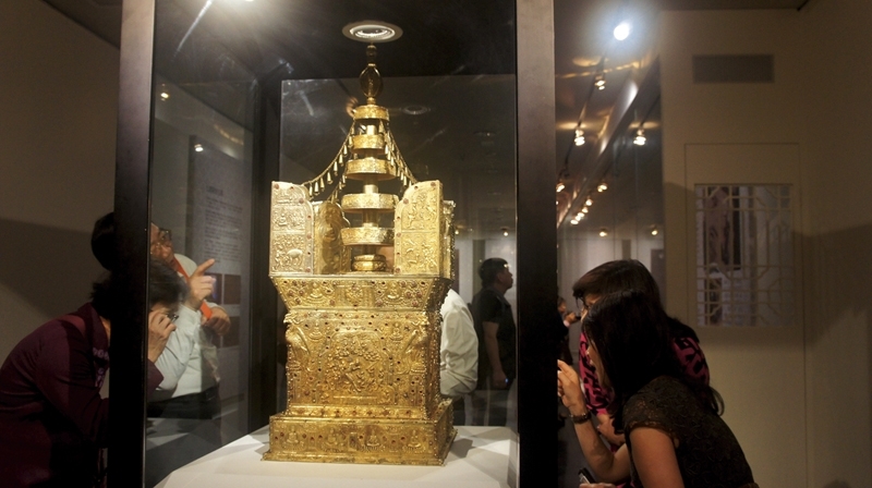 最受矚目的是首度來台展出的北宋〈七寶阿育王塔〉,於2008年在南京大報恩寺遺址出土,塔高近120公分,塔身以佛教七寶:金、銀、琉璃、玻璃、珊瑚、瑪瑙、硨磲為飾,鑲嵌有452顆水晶、青金石、瑪瑙等寶石,光彩奪目,珍貴無比,其上還浮雕有佛陀本生故事、佛傳故事等精美圖像,畫面和文字內容展現了佛陀從出生、成道到涅槃的全部過程,整座寶塔氣勢恢宏,是迄今為止中國出土的體形最大、製作最精美、工藝最複雜、銘文最多、最具史料價值的阿育王塔;而此塔因其珍稀性,據聞日後可能只能在南京目睹欣賞了。