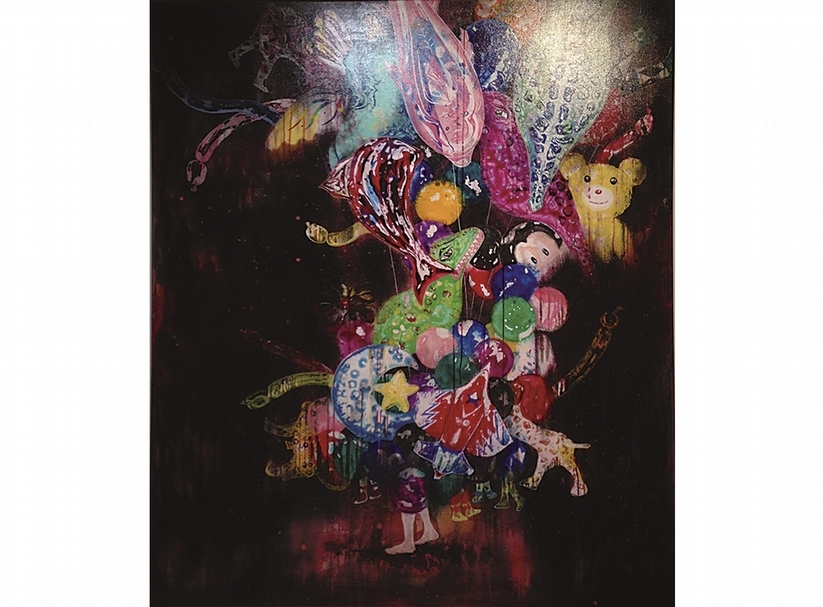 在王亮尹的畫筆下,過往充滿的是甜點般的幸福滋味,但這次展覽開始有了突破性的轉變。延續兩年前在北美館推出的「親愛的,生日快樂」個展,王亮尹從生日禮物的美好,延伸到禮物另一層負面意義,也就是禮物不一定是令人喜愛,美好的,它可能會成為必須接受禮物的人的負擔。而在相對於禮物的「深重」,細小而不起眼且可能是人們欲除之而後快的「塵埃」,反而能包容世界的全貌,這也包括美好與不美好。喜歡遊走在模糊地帶的王亮尹,在塵埃中找到了看似醜陋但卻又真實且美好的意義,對王亮尹而言,塵埃反映了世界的樣貌,「人們常因為塵埃太過渺小而忽略,甚至不喜歡,但塵埃之所以重要是因為它就像空氣一般,無所不在。而且塵埃反射了空氣中所有的光線,讓我們看到顏色;大地若沒有塵埃,太陽會刺到讓我們無法張開雙眼。」有趣的是,若仔細觀看此展,便會發現畫面裡的顏色幾乎都是透過塵埃而反射出來的光點。