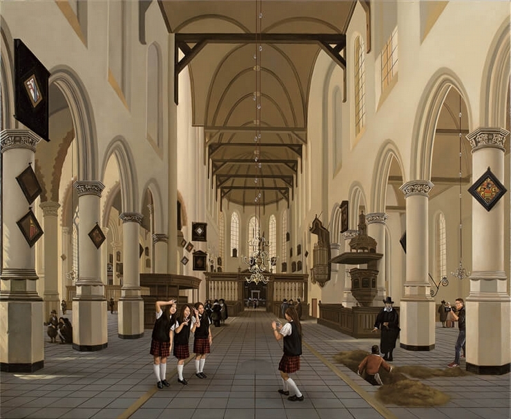 盧昉《美術史紀事Ⅱ—1660年於台夫特教堂》.油畫.92×112 cm.2016。圖/青雲畫廊