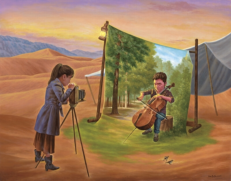 朱書麒《異界風景—別有用心的護花使者》.油畫.72.5×91 cm.2016。圖/青雲畫廊
