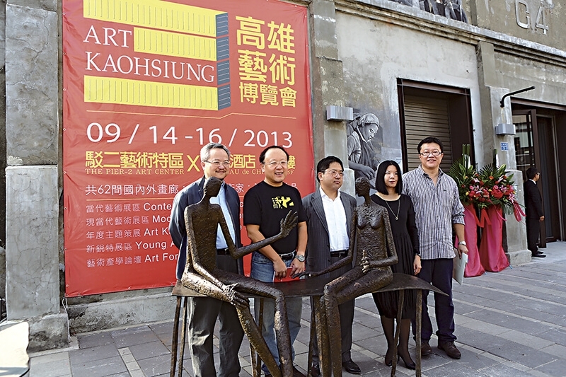 第一屆高雄藝術博覽會,左至右為張學孔、史哲、小山登美夫、謝佩霓與李錦明。(攝影/陳意華)