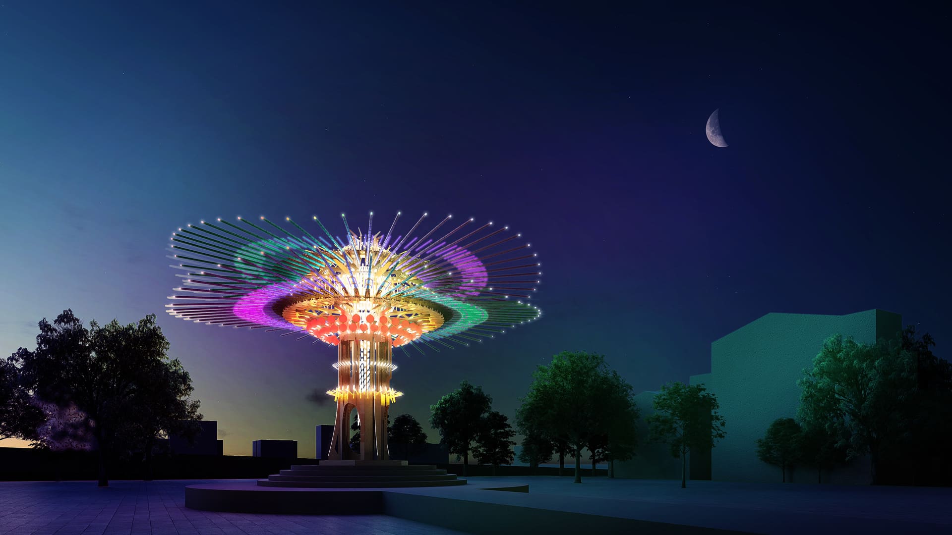 今年的燈會舉辦於科技城市新竹市,主燈《乘風逐光》的設計循城市發展脈絡,同時觀察新竹的地理性質、爬梳舊城區的歷史與傳說,設定出四大主線—「風土習禮 光動祈福」、「竹藝傳統 當代製造」、「創新城市 文明的光」、「共識創造 在地號召」,試圖以庖丁解牛的職人精神,展現融合時代文明勇往前進的能量傳達。