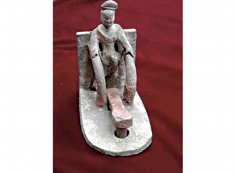 從未遭盜掘的前室內,考古人員清理出166件(組)珍貴文物,出土有陶鎮墓獸、武士俑、各類騎馬俑、銅器及墓誌等。這些文物具有典型的北周風格,特別的是其中一具踏碓俑,可清楚看出時人以踏碓(碓:ㄉㄨㄟˋ,一種舂米的用具)加工穀物的情形。此外,出土的五件青銅器都是製作丹藥的器具,反映了當時貴族間流行服藥的風氣。