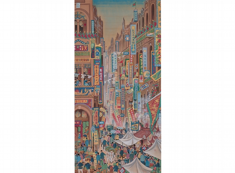 郭雪湖│南街殷賑 膠彩、絹 188×94.5cm 1930 台北市立美術館提供