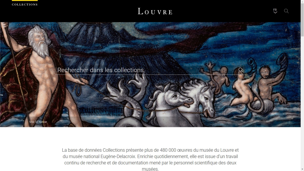 館長尚路克.馬丁內(Jean-Luc Martinez)接受採訪時表示:「我們為了上線已經準備多年,希望可以為廣大民眾與相關研究者提供更多服務。我們的目標是希望可以建立一個沒有障礙的模式。」數位資料庫中的藏品除了羅浮宮博物館本身的藏品外,也包含寄存品、德拉克洛瓦美術館(Musée national Eugène Delacroix)與杜麗樂花園(Tuileries Garden)的雕塑品等。